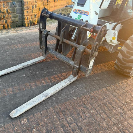 This machine has: - Approx. 3200 hrs - Hydrostatic drive - Full glass cab - 6m reach - 2.6 Ton lift - Approx weight 4800KG - C/W pallet forks - Good set of tyres - Joystick controlled - Good set of batteries - Piped for attachments